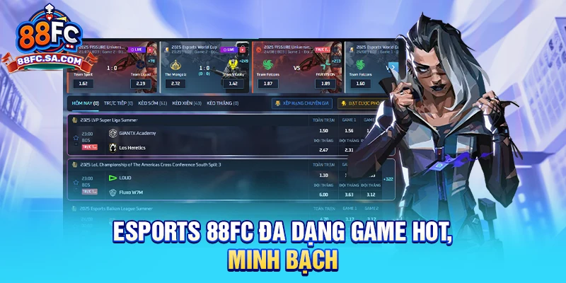 Esports 88FC là nơi hội tụ các giải đấu điện tử nổi bật với môi trường thi đấu cạnh tranh, dữ liệu phân tích rõ ràng. Các game thịnh hành đều có thông số minh bạch giúp người chơi tiếp cận thông tin nhanh chóng. Giải trí tại 88FC cảm nhận sự ổn định, hấp dẫn, kịch tính trong từng phiên.